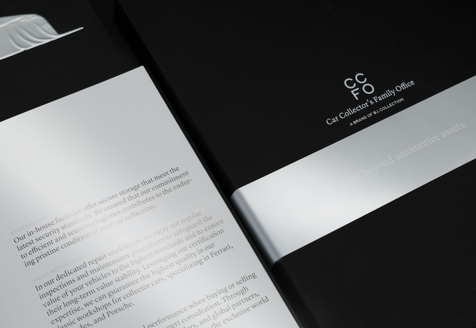 Tailored for automotive enthusiasts, the Car Collector’s Family Office (CCFO) combines the proven services of traditional investment and wealth management with a focus on the unique requirements of car collectors. We realised the whole package, inclunding naming, strategic brand positioning and the advertising campaign.